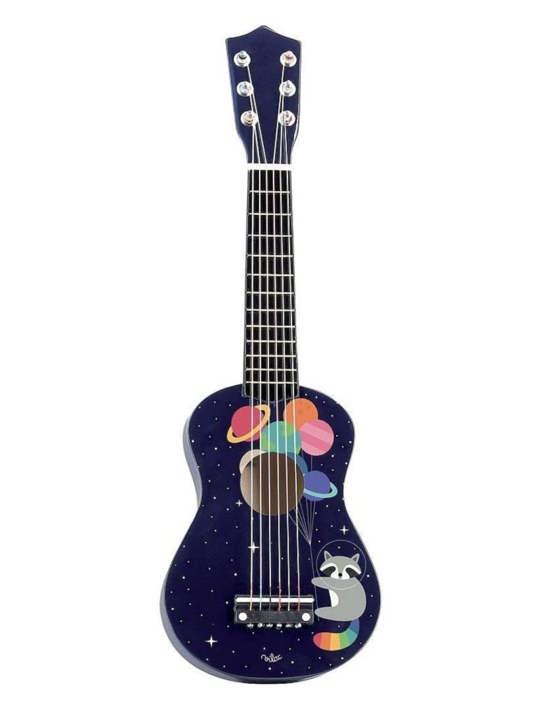 Découvrez cette belle guitare blanche de la marque Vilac, adaptée pour les enfants pour qu’il fasse comme les grands !